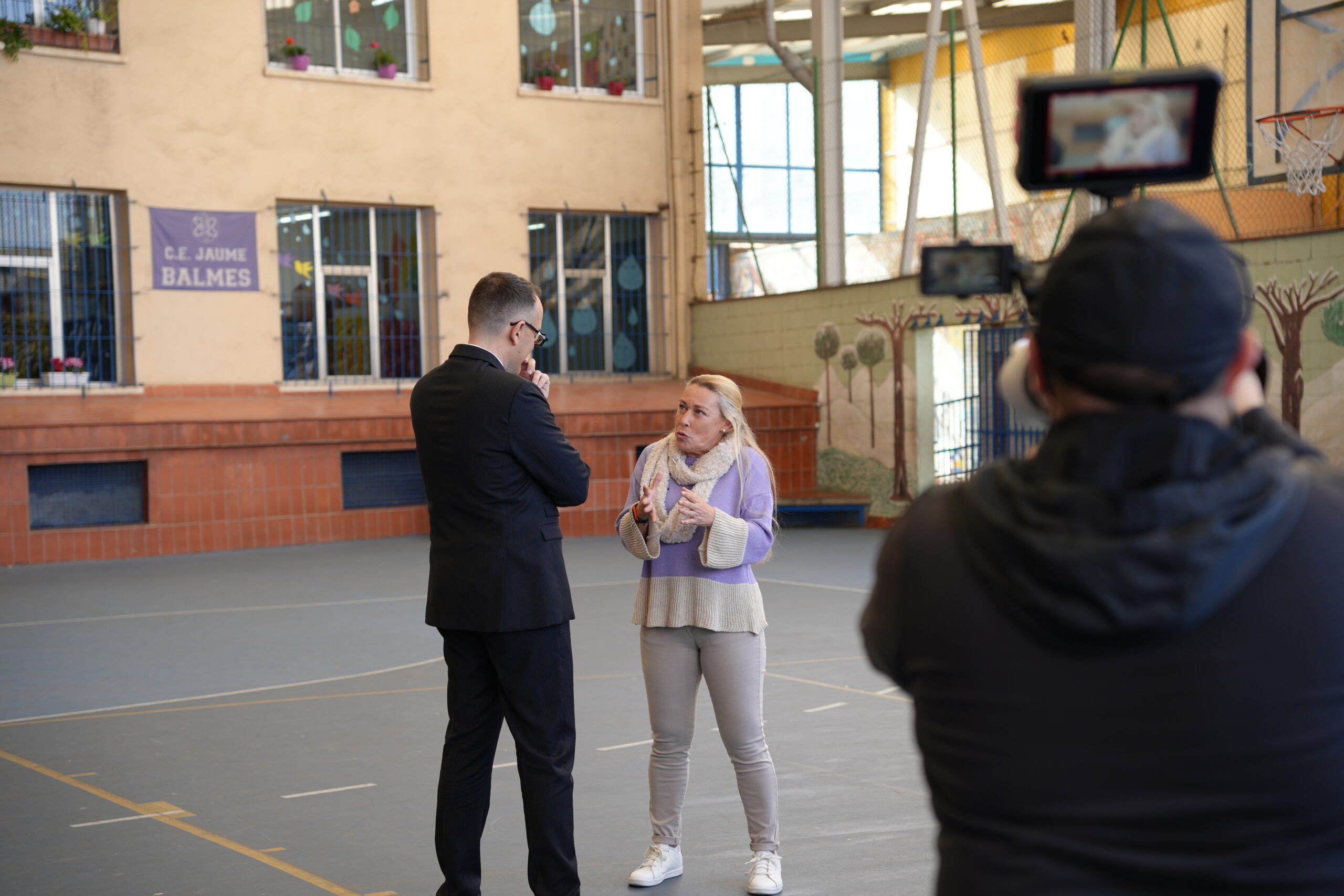 A principis de març, la productora es va posar en contacte amb nosaltres per conèixer el centre, ja que el Balmes era un dels possibles escenaris per filmar el programa per la vinculació personal amb l’entrevistat. Quan van venir, van decidir que el pati de l’ESO del Balmes seria l’escenari final de l’entrevista perquè era un espai significatiu. Així va ser com el 8 de març van venir a filmar el programa a la nostra escola.