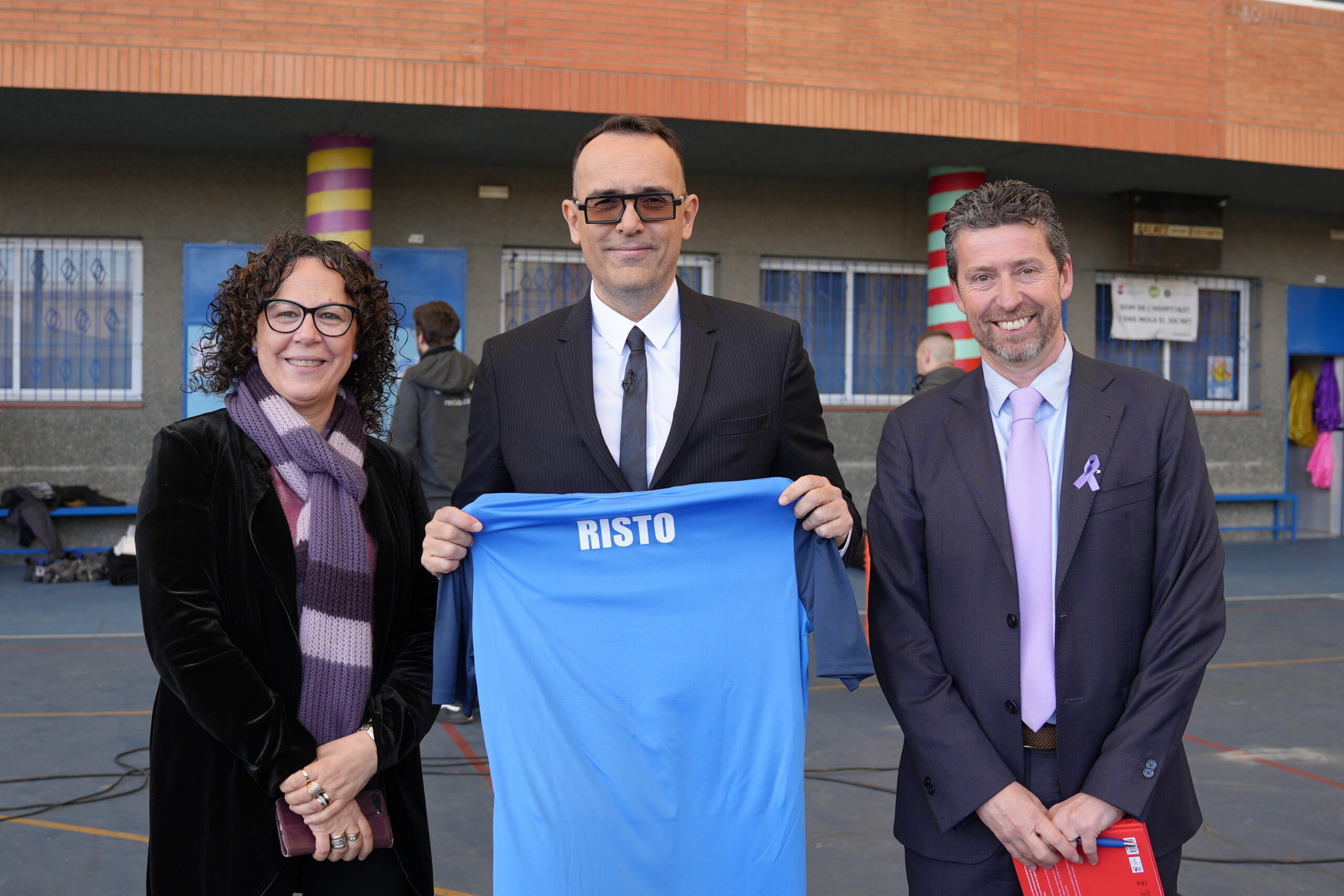 A més, vam voler fer-los un regal tant al Risto com al Jordi: una samarreta del Balmes amb el seu nom. En agraïment, el Risto ens va signar el seu llibre “Manual de segundos auxilios” i el Jordi ens va regalar una samarreta del Barça signada per ell. També van dedicar un moment a saludar a tot l’alumnat d’ESO i primària, que els veien des de les finestres de les aules.